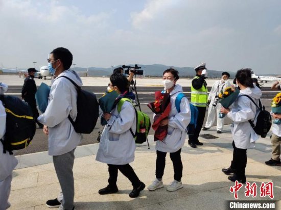 云南援助湖北医疗队首批返程队员抵昆 交警向医疗队敬礼:欢迎回家