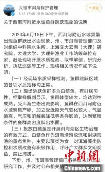 大理西洱河频繁出现鱼群跃出水面现象 官方回应